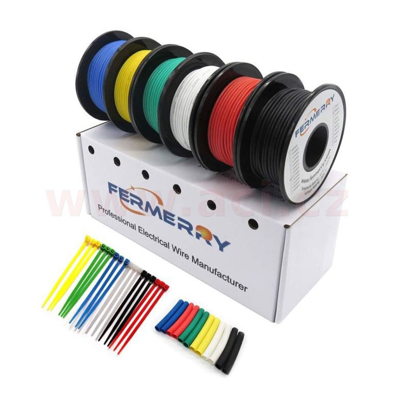 sada kabelů, lanko 0,75mm2 Cu+Sn, 6 barev, balení 6x8 m