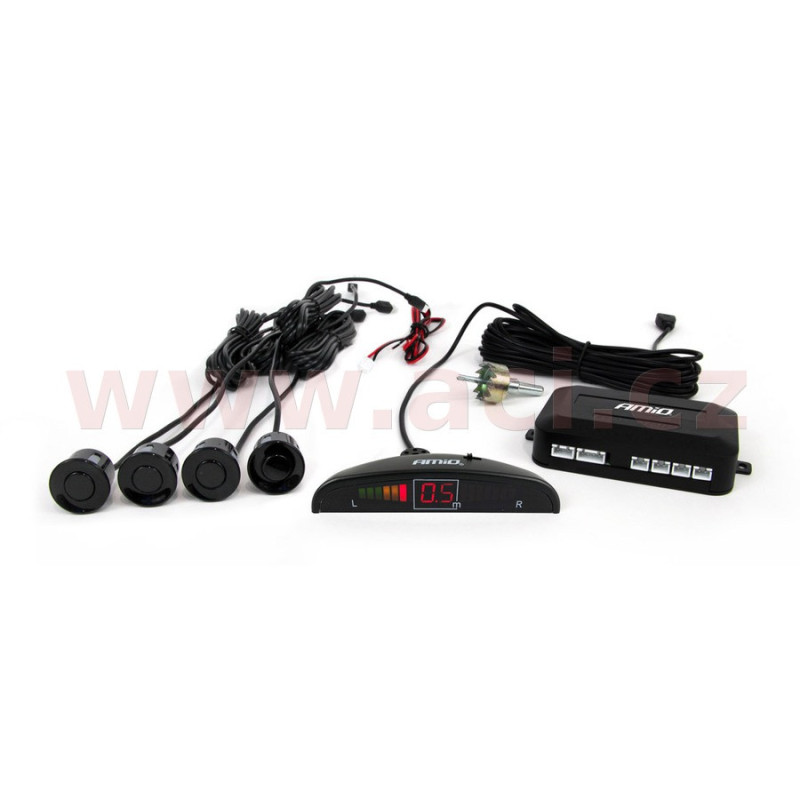 parkovací asistent zadní - zvuková signalizace + LED displej, 4x senzor (ČERNÉ)