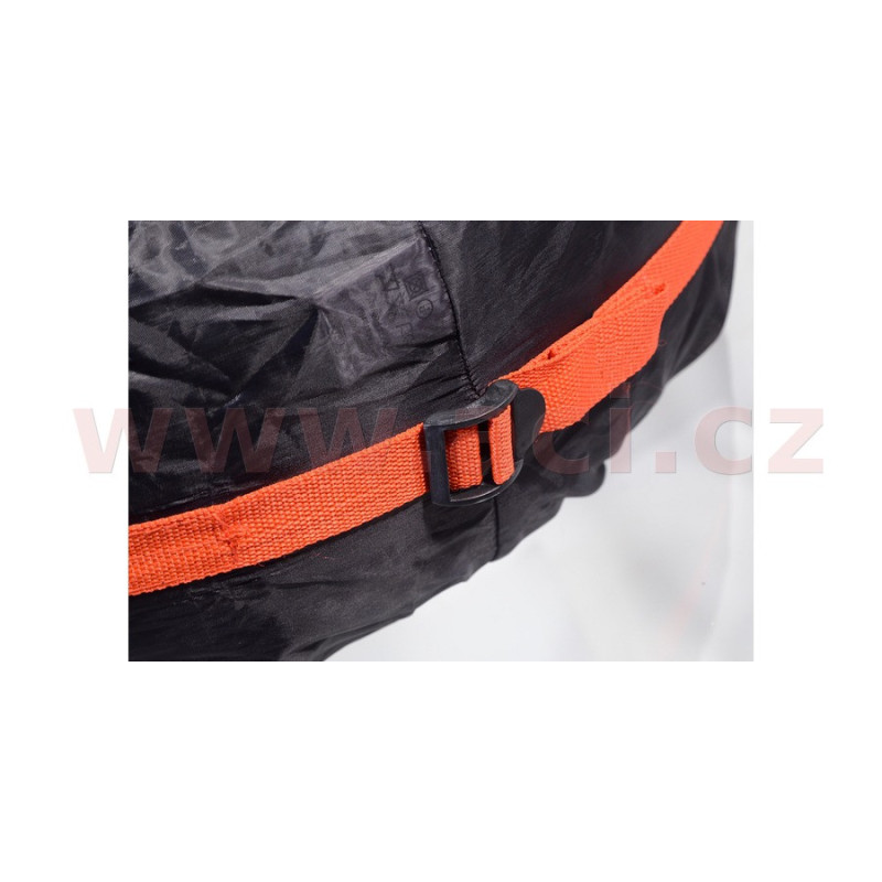Návlek se navlékne na pneumatiku a pomocí spony se důkladně upne popruh po obvodu. Nakonec se po stranách stáhnou gumové upínáky, aby návlek obepjal pneumatiku i po stranách.