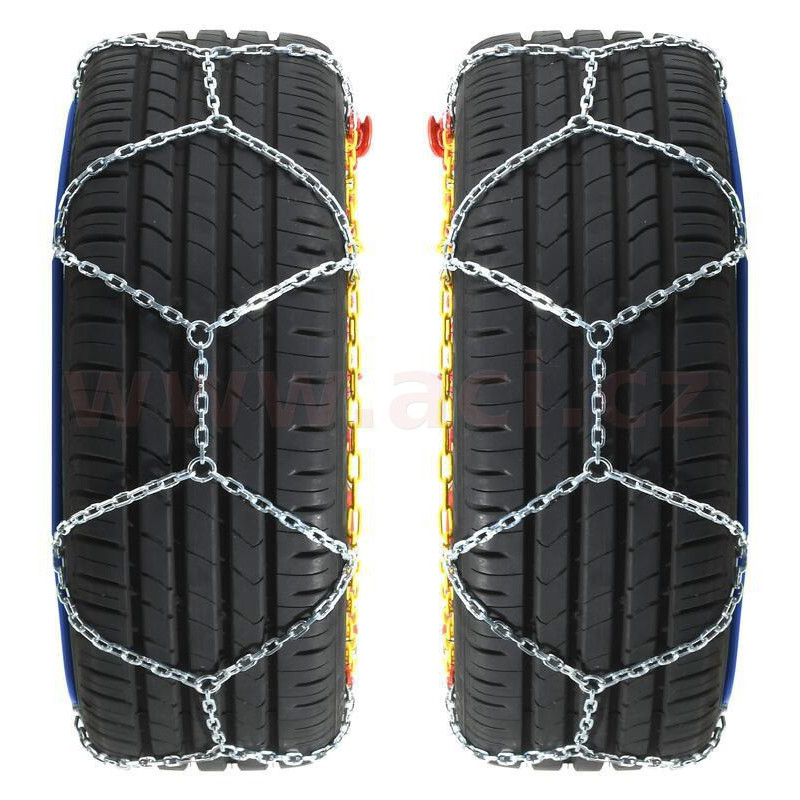 Sněhové řetězy, pro osobní vozidla do hmotnosti 1800 kg, splňující evropské normy včetně v Rakousku vyžadované "ÖNORM V 5117".
