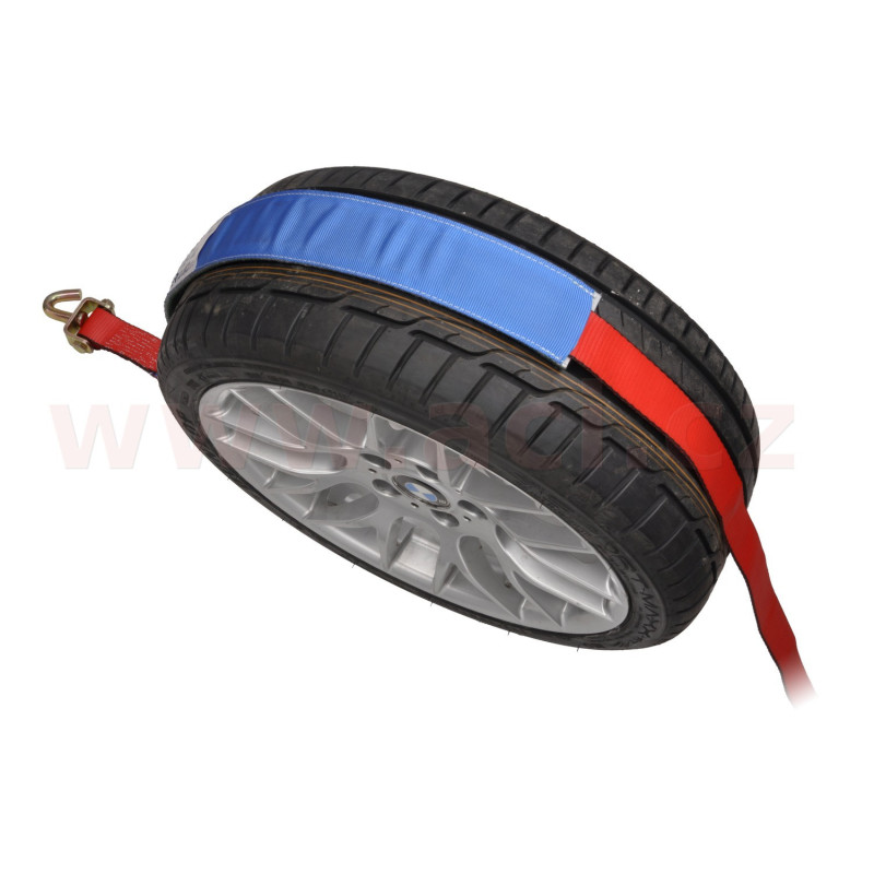 upínací popruh pro převoz vozidel přes kolo, 5 t, 3x otočný hák, protiskluzový návlek, ráčna, VDI 27